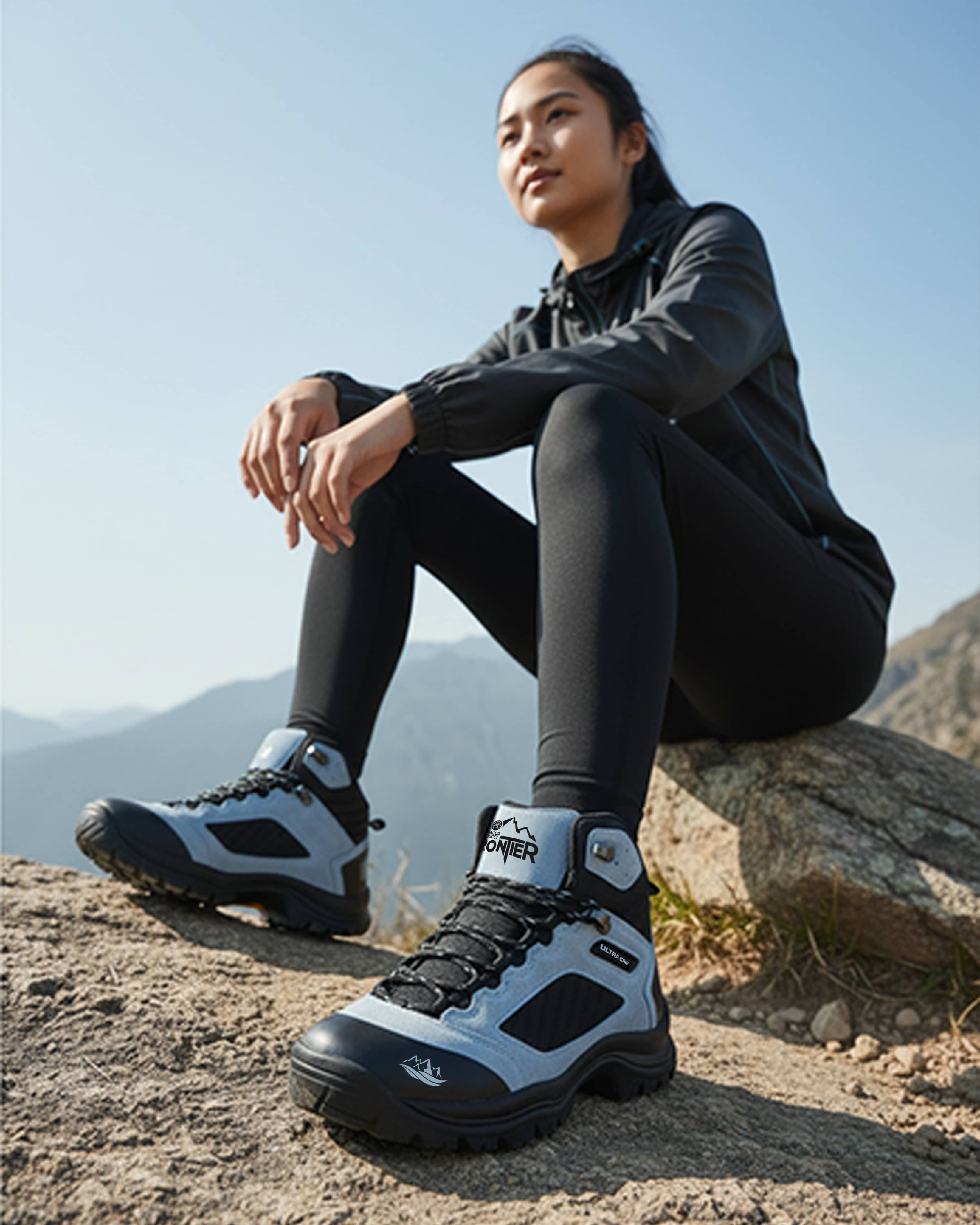 Women-Specific Trekking Fit: Engineered exclusively for women, Frontier features a refined ankle height, supportive collar padding, and a snug heel lock that adapts to the female foot structure—ensuring better balance, reduced fatigue, and confident movement on uneven terrain.