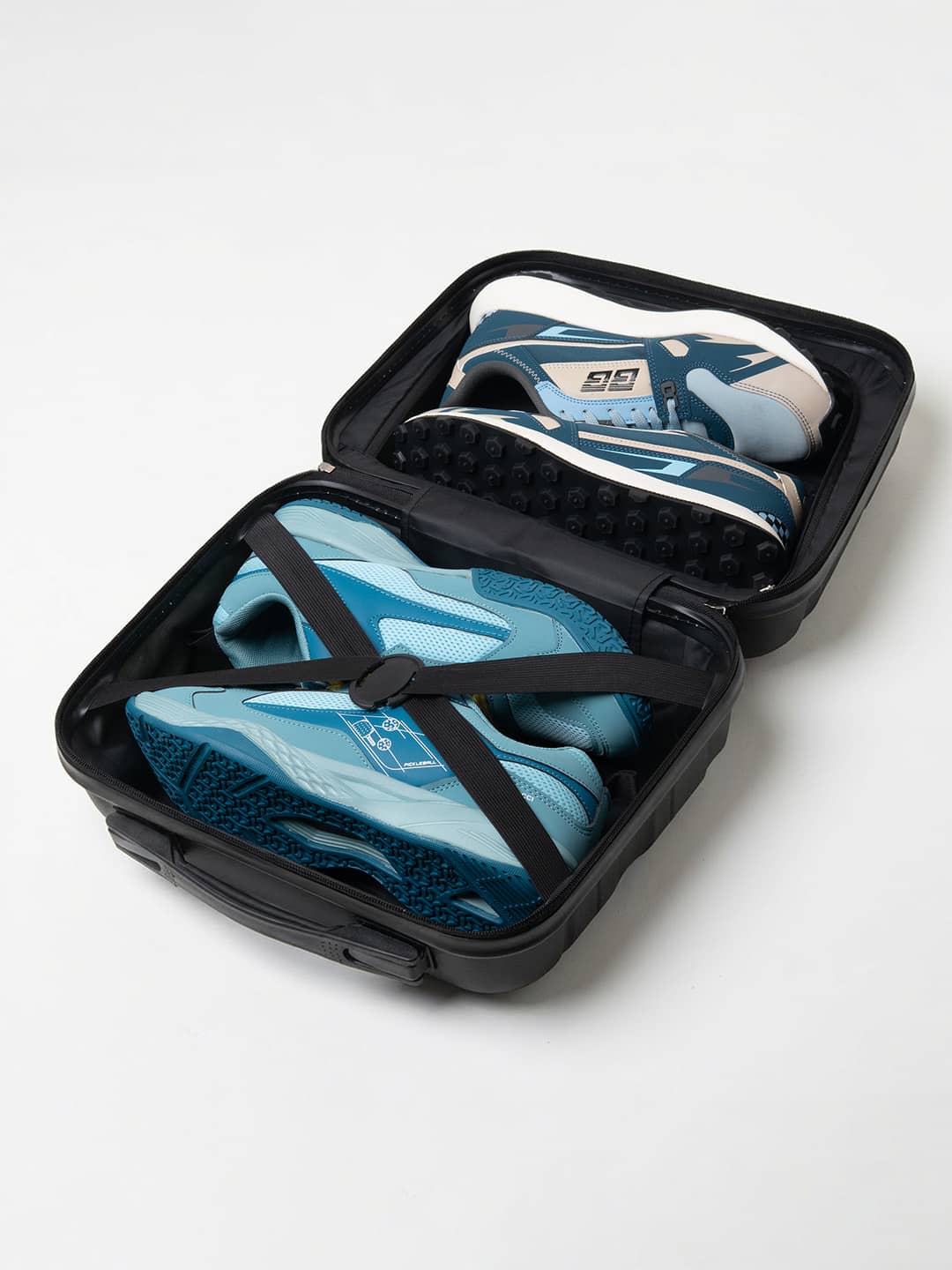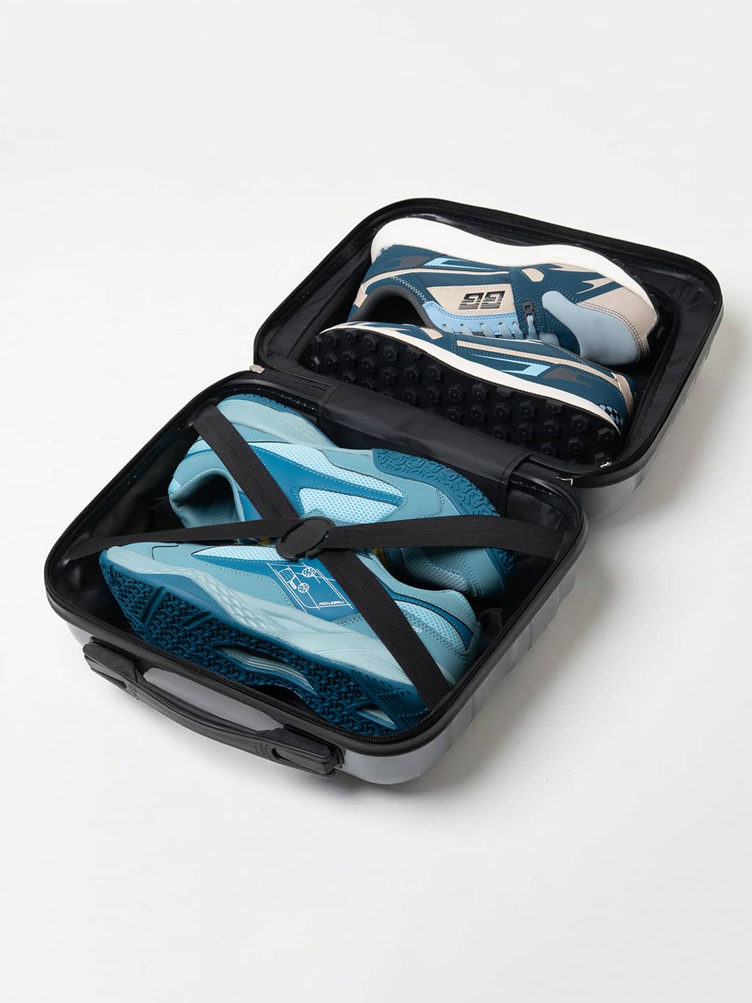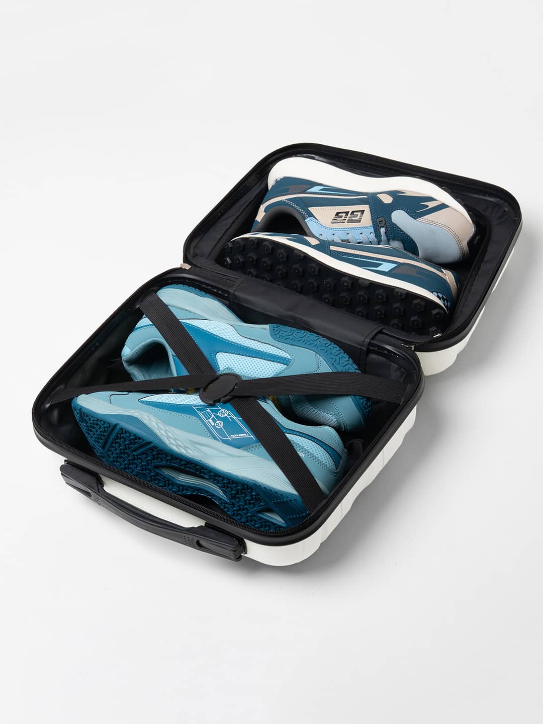 Thoughtful Inner Organization: Elastic cross-straps hold shoes firmly in place, while the mesh zip pocket stores socks, laces, wipes, or shoe fresheners.
