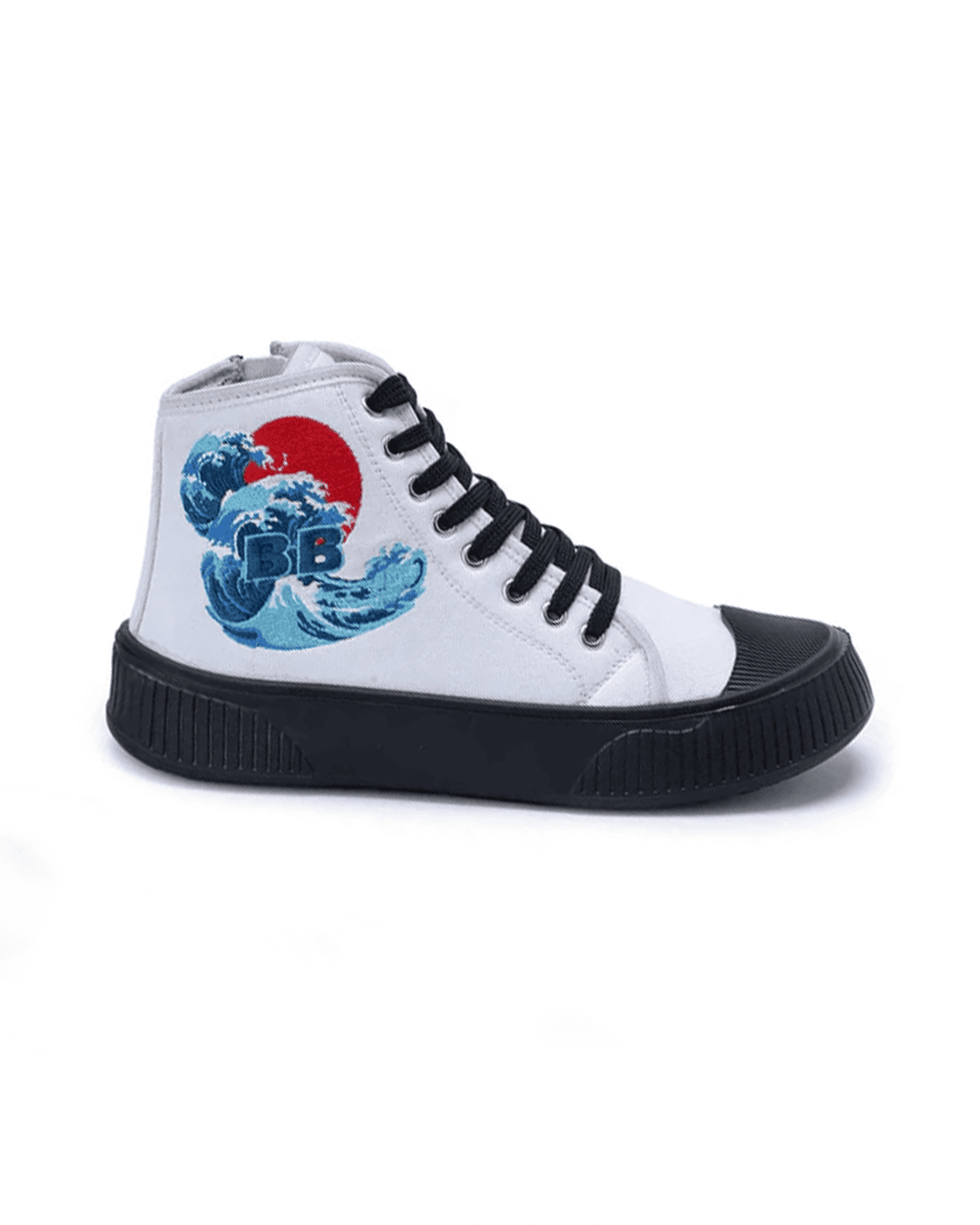 Japanese-Inspired Canvas High-Tops with Dynamic Wave Embroidery & Textured Grip Sole for Gen Z
